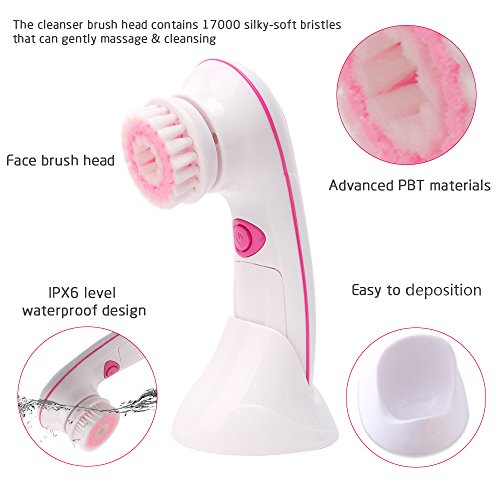 - ✔Waterproof Facial Brushes Cleansing System: Advanced portable exfoliator cleanser and face scrubber, waterproof facial cleansing brush kit, advanced facial cleansing brush and massager with 2 brush heads for removing blackhead, exfoliating and massaging, 4 replacement brush heads. zero damage facial brush takes advanced PBT materials, much gentler and softer, no skin irritating.