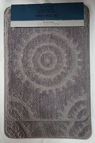 SOHO LifeStyle Superior Jacquard Sculpt Embossed 2-Piece Bath Rug Set / Bath Mat Set, 17"x24" and 18"x28", Aztec Sun Grey