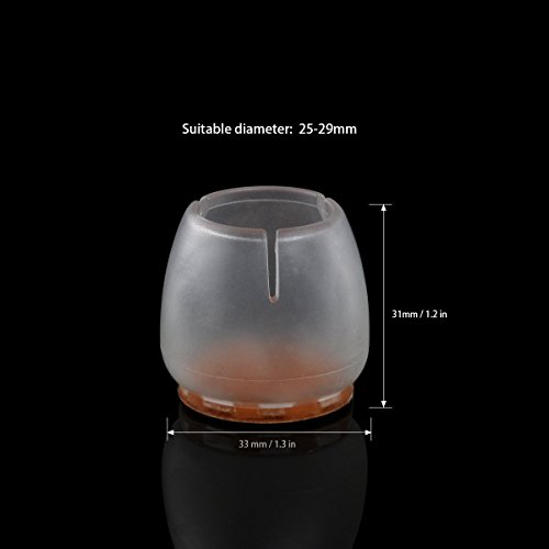 -. Feature : Round Opening size: 25x25mm - 29x29mm, Round Bottom diameter: 22mm, Height: 28mm / Function: Anti-slip prevent scratches. / No need to stick, simple to wrap and not easy to fall off. / Color: Transparent Material:. Durable soft silicone Shape:. Round / Note: The real item may look smaller than that in the pictures. This item is suitable for chair leg whose diameter is less than 29mm, please make sure it matches your chair leg before you make the order.