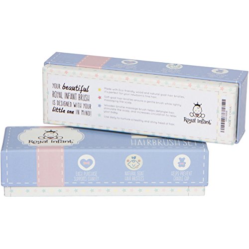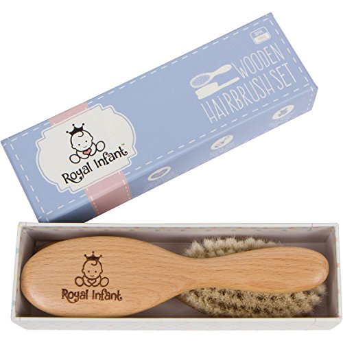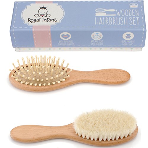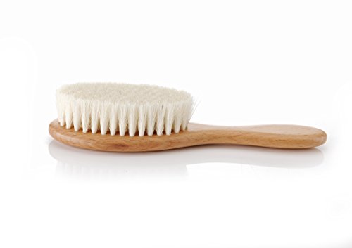 Wooden Baby Hair Brush Set with Natural Goat Hair Bristles ~ Helps Prevent Cradle Cap ~ Best Baby Shower and Registry Gift ~ Supports Charity