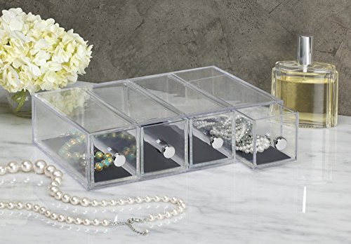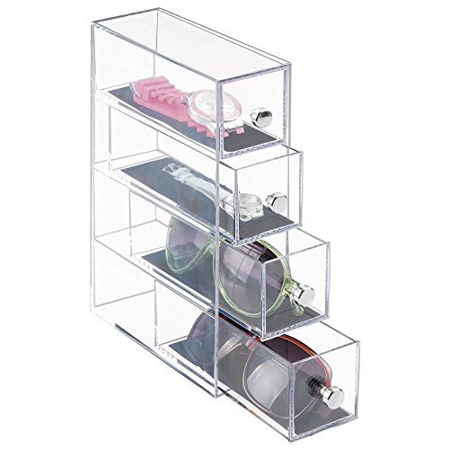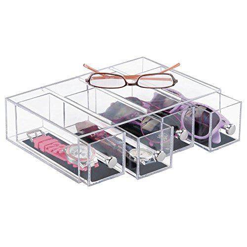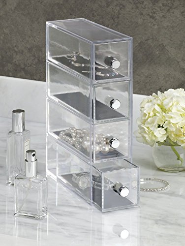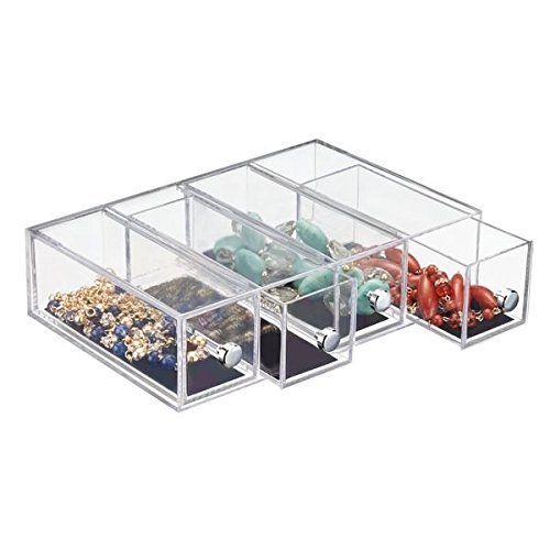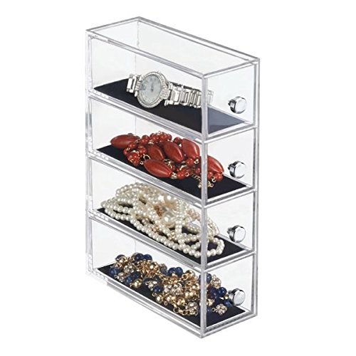 mDesign Fashion Jewelry Organizer Box for Rings, Earrings, Bracelets, Necklaces - 4 Drawers, Clear/Black