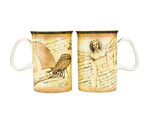 -. Feature : Carmani Painters 2-pc Tea Cup or Mug Set, Leonardo Da Vinci Porcelain Collection / Dimensions: 4"H x 3"W. Volume 12 Oz / Design, Premium Quality Luxury Porcelain / Makes a Unique and Sophisticated Gift, Dishwasher Safe / Made in Poland