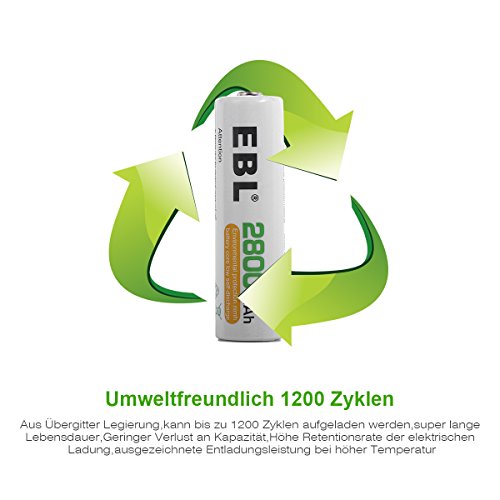 Akkus: 8 Stuck AA 2800mAh 1.2V Ni-MH wiederaufladbare Akkus. Achtung: Bitte wahlen Sie den Verkaufer - EBL, ansonste wird keine Kundenservice von EBL geniessen.