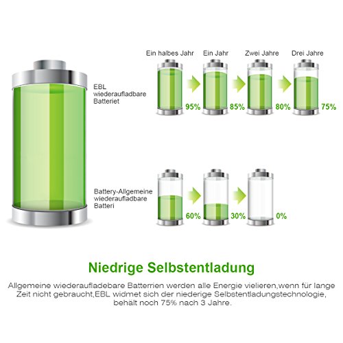 EBL Akkus konnen bis zu 1200 Mals aufgeladen werden, wenn diese ganz oder teilweise entleert wurden