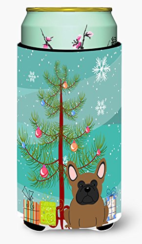 Caroline's Treasures Merry Christmas Tree French Bulldog Brown Tall Boy Beverage Insulator Hugger BB4138TBC, Multicolor