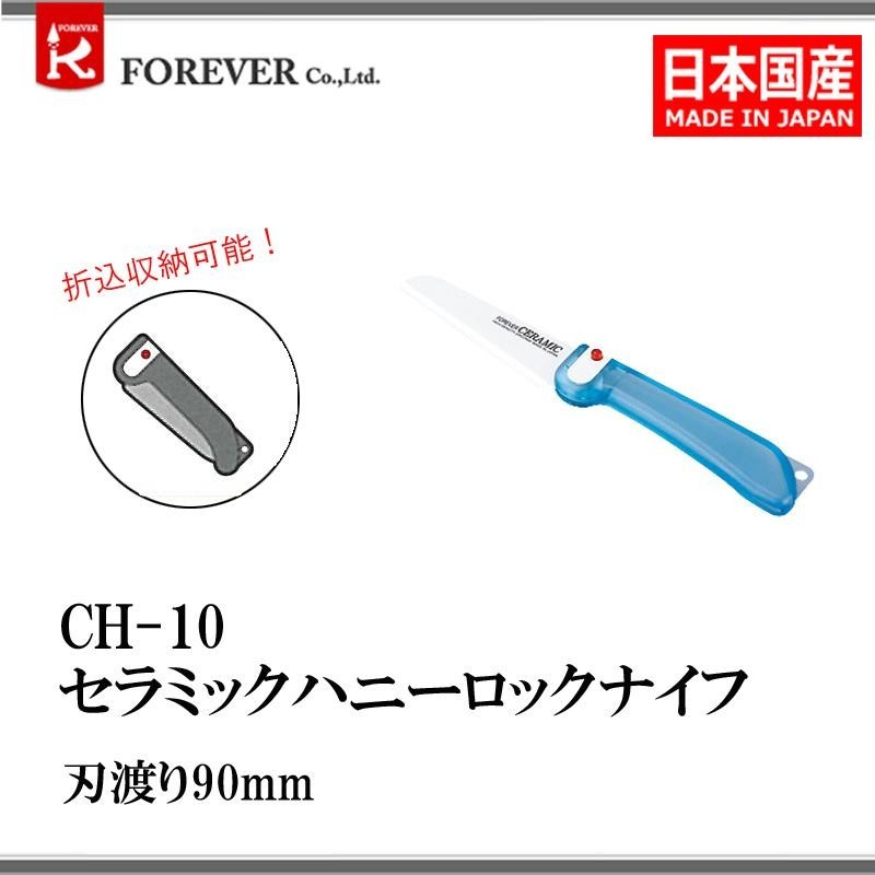セラミック製でシャープな切れ味が持続するナイフです。 製造国:日本 素材・材質:刃:ジルコニアセラミック柄:ABS樹脂 商品サイズ:212×23×15mm(折込収納時:120mm) 重量:45g 仕様:刃渡り:90mm折込収納可食洗機使用不可 付属品:取扱説明書 ※サプライヤー直送品 ご注文後3~4営業日後の出荷となります【商品名】フォーエバー セラミックハニーロックナイフ CH-10