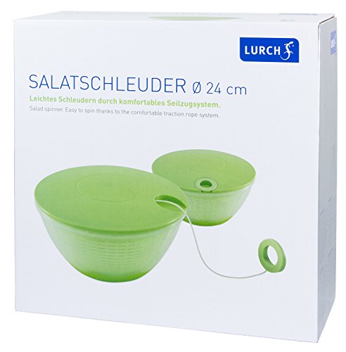 Studio : Lurch Publisher : Lurch Binding : Kitchen Product Description WHAT IS IT Lurch Germany Salad Spinner with Pull Cord, Green/Cream White WHY USE IT Lurch Germany Salad Spinner with Pull Cord - Salad must be washed thoroughly - and dried as quickly as possible: LURCH offers crunchy-fresh concepts to make it all possible. -Salad is washed and dried in seconds -With Pull Cord for driving the spinner -A water inlet allows you to wash the salad right in the bowl -Removable spinner for easy filling and emptying 0