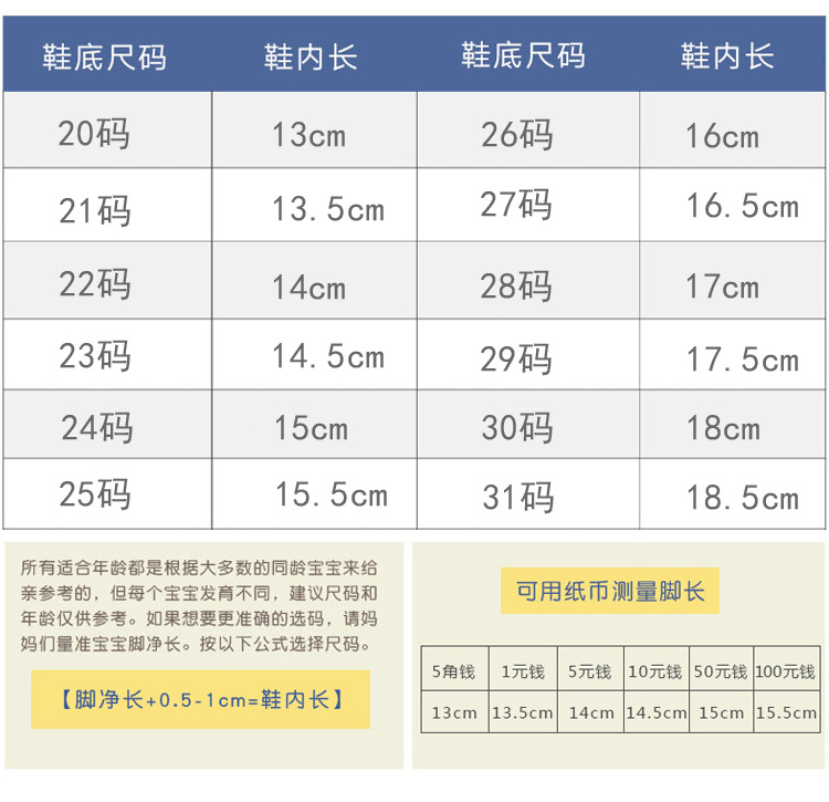u0026nbsp;尺寸:适合儿童尺码为 鞋子内长X2减10