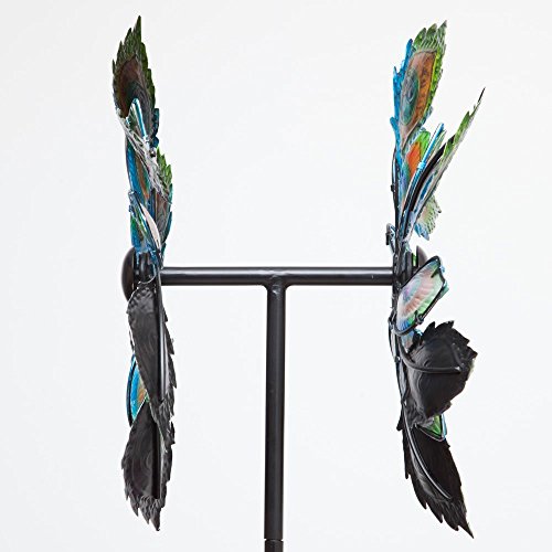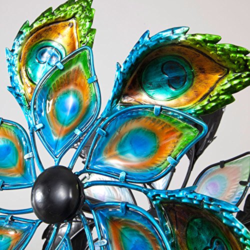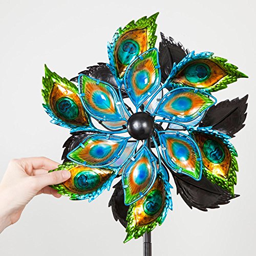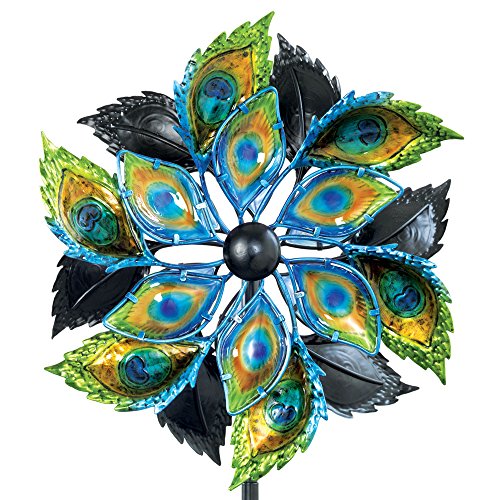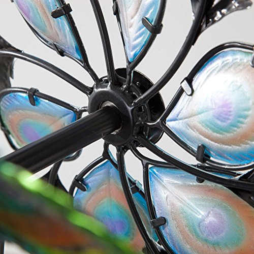 Bits and Pieces - Peacock Feather Wind Spinner - 14 Inch Decorative Kinetic Wind Mill - Unique Outdoor Windspinner Lawn and Garden Décor, Lawn Ornament