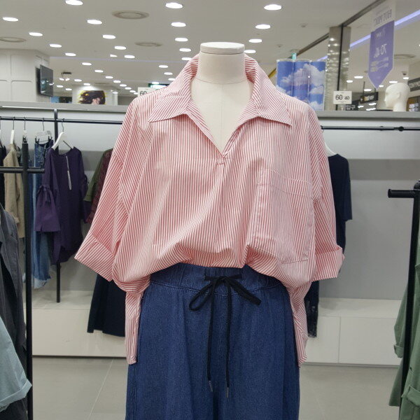 오픈핏 디자인으로 편안하며 핀스트라이프 패턴으로 한층 스타일리쉬합니다 나일론 홍방 코튼 소재로 쾌적하면서 가벼운 착용감을 선사합니다 뒷판버튼 장식되어 유니크하며 포켓 디테일로 포인트를 주었습니다프리사이즈 총길이58가슴둘레138