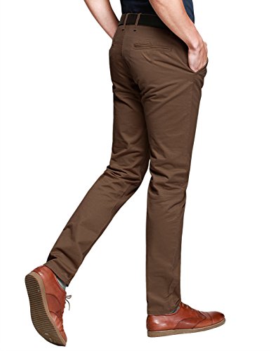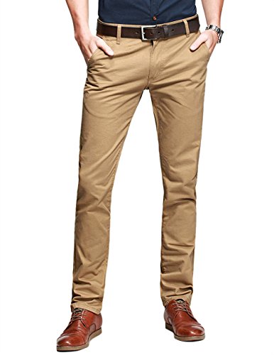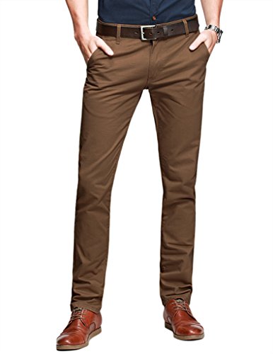 -. Feature : Stylish, flat front, slim fitting pants with tapered legs / Sits at the waist, zip fly and button closure. Belt loops. Belt not included / 2 front slash pockets, 1 watch pocket, 2 back jetted pockets / High quality, durable, medium weight cotton fabric, very comfortable to wear / The trendy cut and colors suit both casual business wear, everyday wear and can be dressed up for more formal occasions