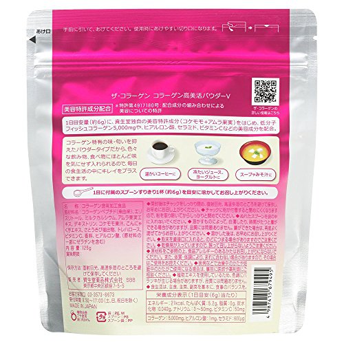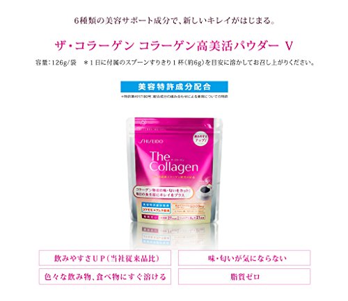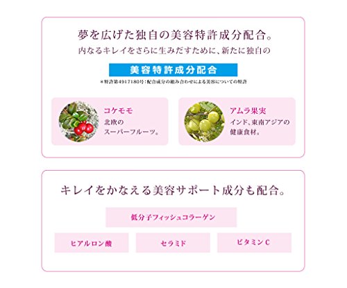 daily recommended dose of the latest collagen research (about 6g ) to including the Shiseido own beauty patent component (lingonberry + amla fruit) blending and low molecular fish collagen 5000mg hyaluronic acid ceramide the cosmetic ingredients such as vitamin C.
