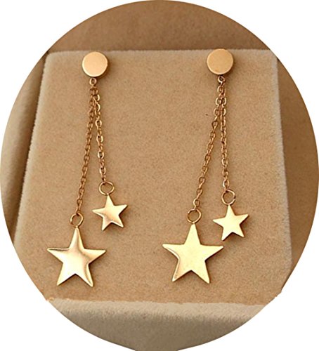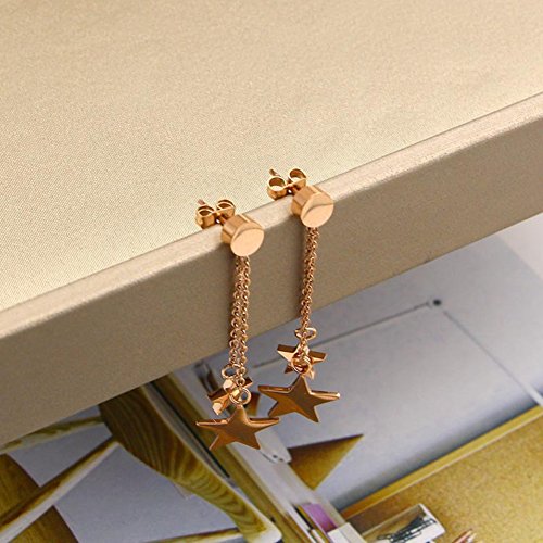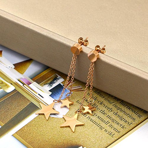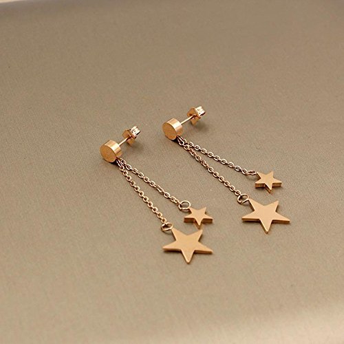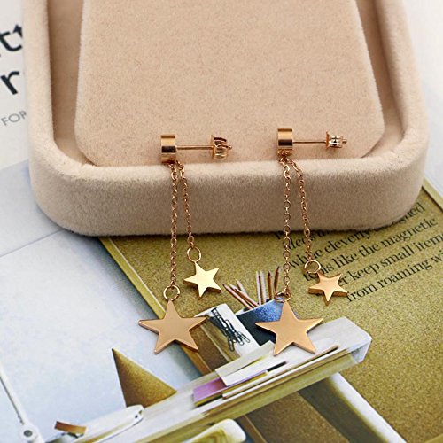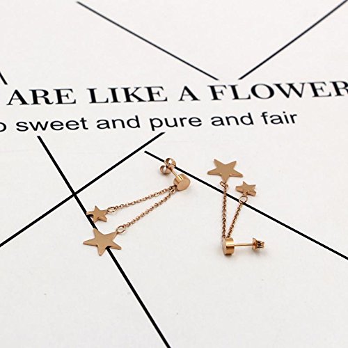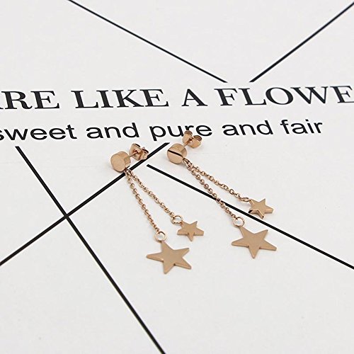 Titanium Steel Rose Gold Plated Shining Lucky Star Tassel Tiny Dot Ear Stud Dangle Earrings,Excellent Quality,You Deserve to own it.