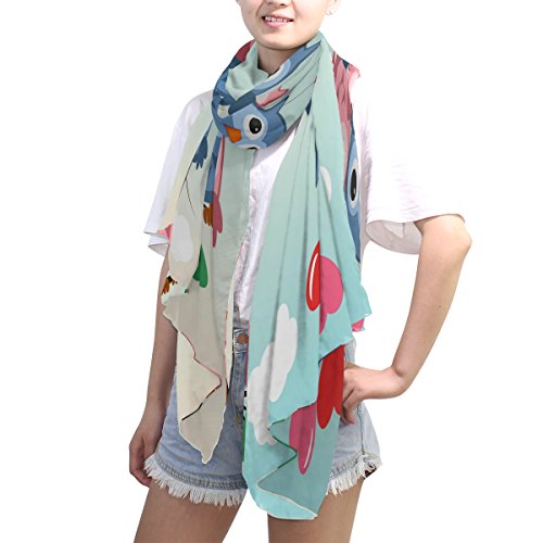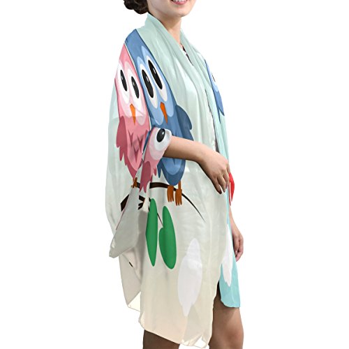 (ALAZA)/Accessories/Cold Weather Accessories/DIRECT FROM USA/ALAZA Cute Owl Blue Sky Cloud Chiffon Silk Long Scarf Shawl Wrap