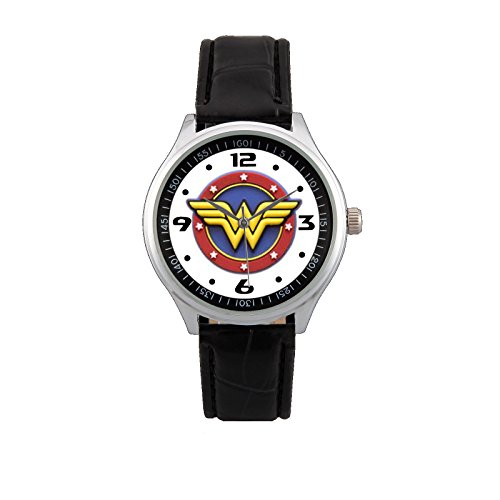 -. Binding : Watch -. Brand : The A-Watch Shop -. Department : Mens -. EAN : 0802301497332 -. Feature : Watch has Rotating Bezel / Face Size ~ Appox. 4 cm in diameter / Band Size ~ Appox. 17 cm long ( Adjustable ) / Total Length : Appox. 21.5 cm long / Free Gift Box -. Label : Hong Kong -. Manufacturer : Hong Kong -. MPN : dd -. PartNumber : dd -. ProductGroup : Apparel -. ProductTypeName : APPAREL -. Publisher : Hong Kong -. Studio : Hong Kong -. Title : Wonder Woman Black Leather Round Wrist Watch Limited Edition#4 -. UPC : 802301497332