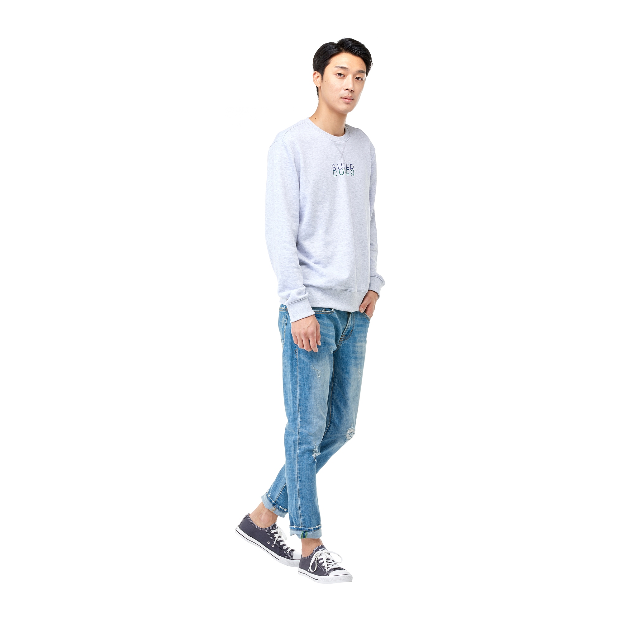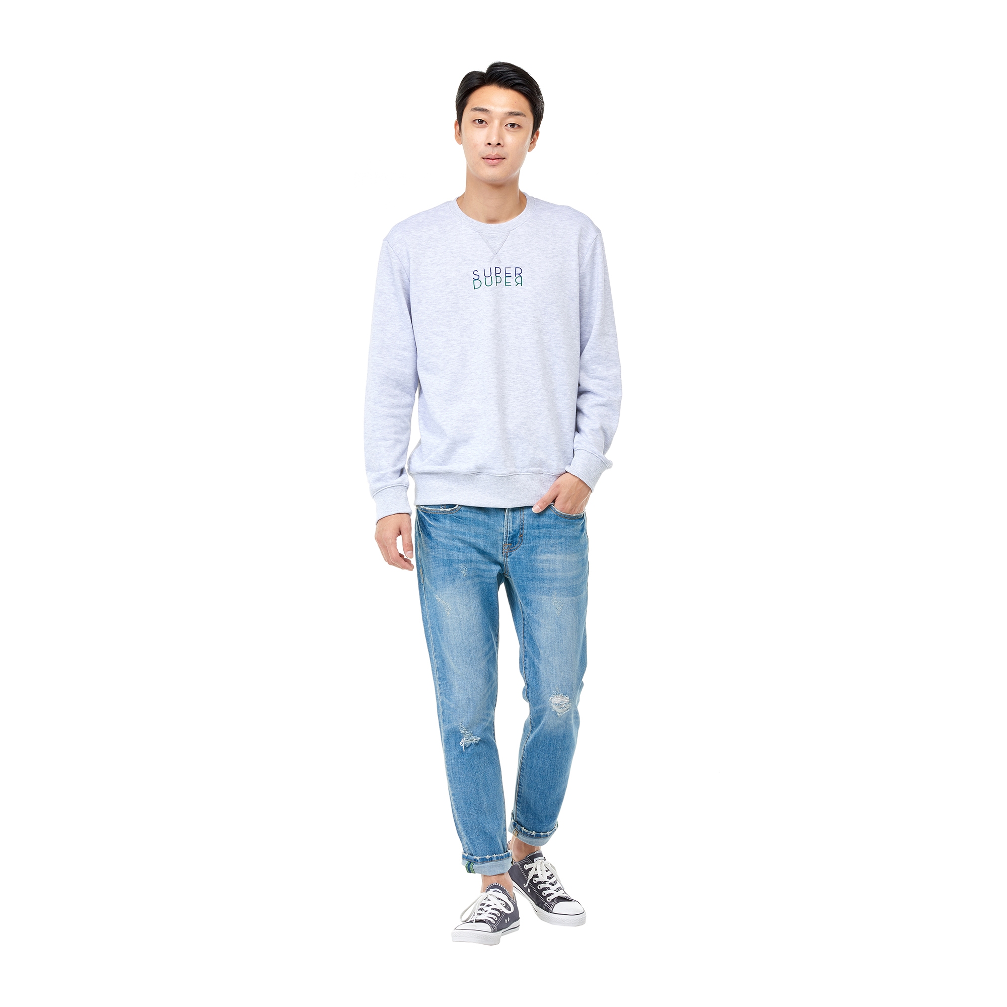 컬렉션 : 2017 Fall/Winter 디자인 포인트 : - 심플한 레터링 디테일이 돋보이는 라운드넥 디테일의 맨투맨 티셔츠- 넥라인과 소매 등에 립 조직 디테일을 가진 디자인- 면 혼방 소재로 부담없이 편안한 착용감을 자랑하는 아이템 스타일링 추천 : 다양한 워싱의 데님팬츠 혹은 테리 팬츠를 매치하여 캐주얼한 스타일링을 연출 할 수 있음