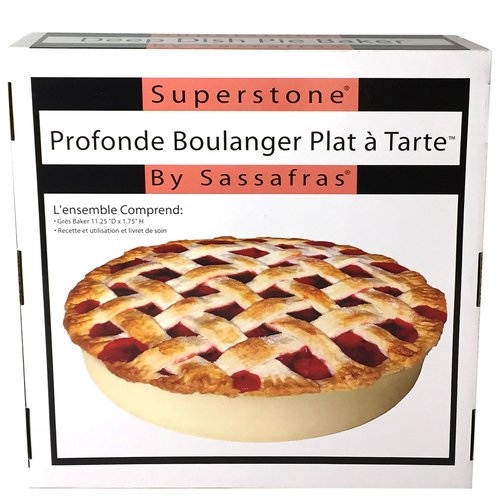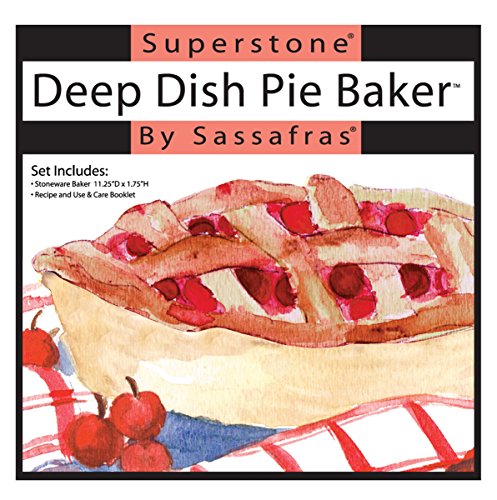 Sassafras Superstone Pie baker with The Superstone Country Kitchen Stoneware Cookbook -Enjoy Perfect Deep Dish Pizza Crust & Bake Amazing Pies with Our Superstone Pie & Pizza Stone Baking Dish