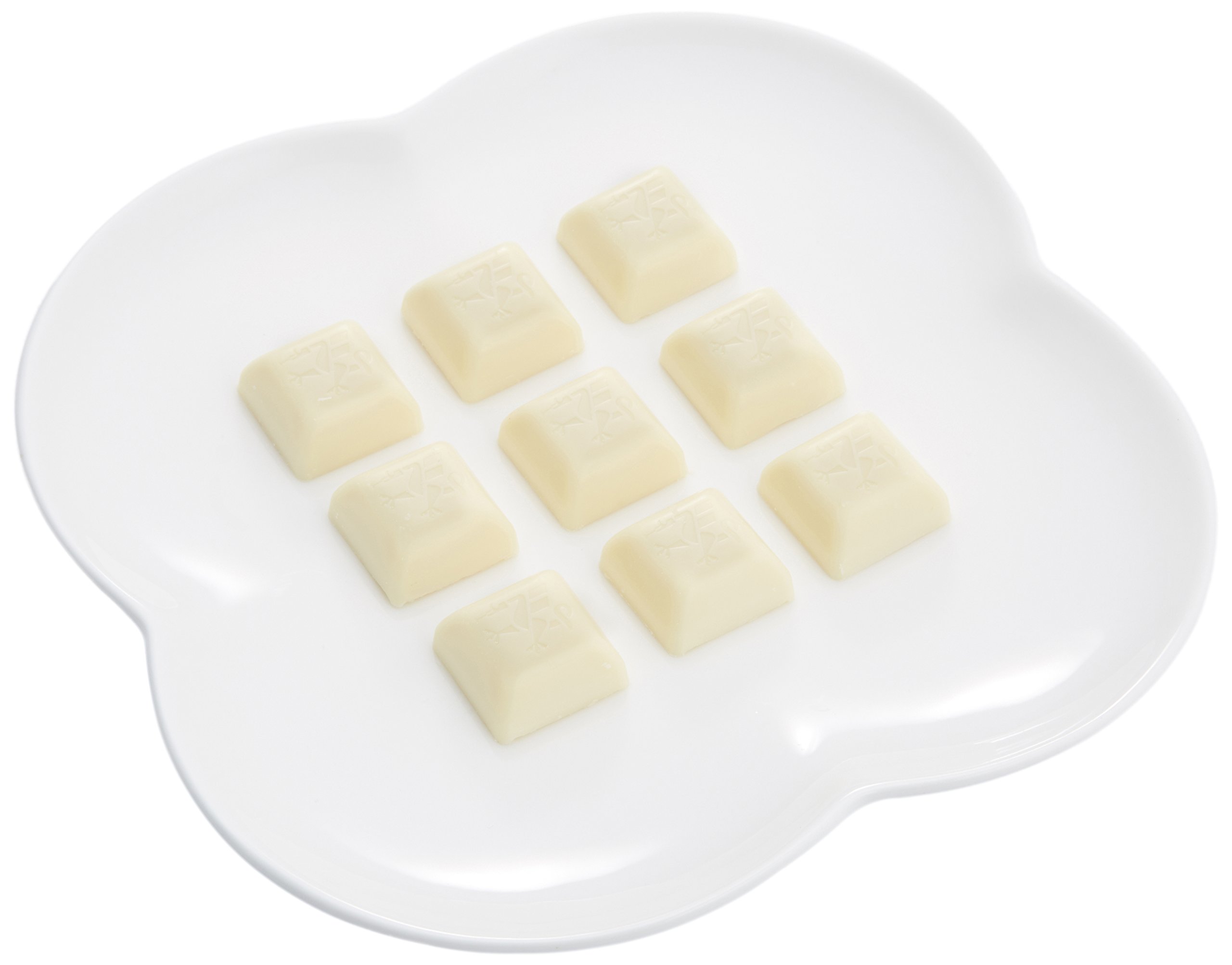 It is a bite size wrapped in smooth white chocolate with smooth white chocolate.