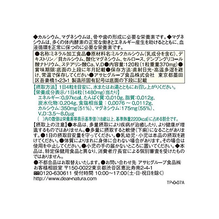 원본상품명: ディアナチュラ カルシウムマグネシウム 120粒