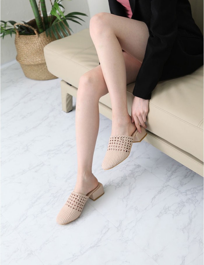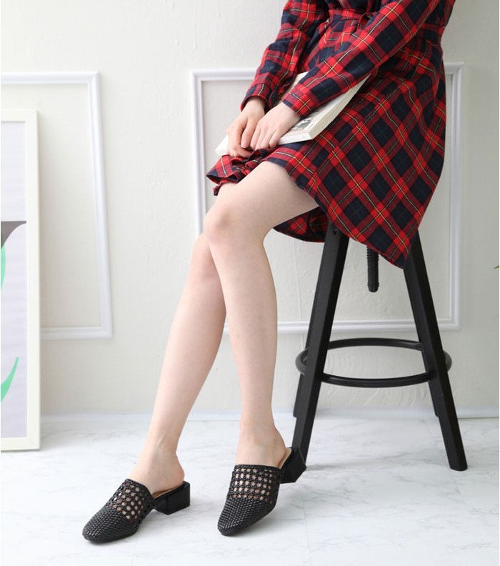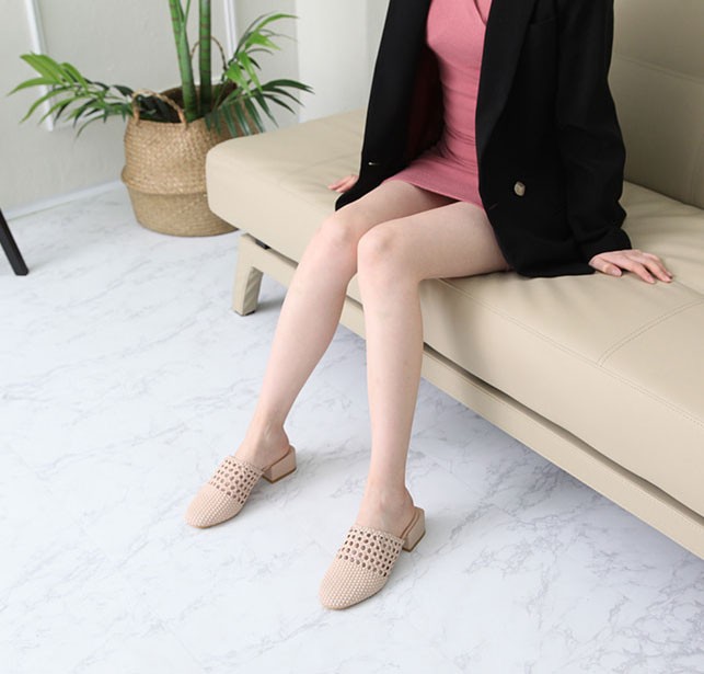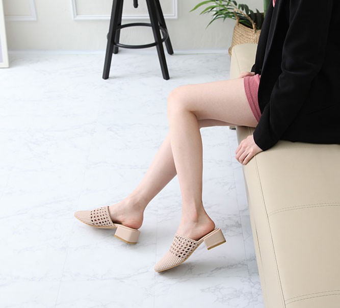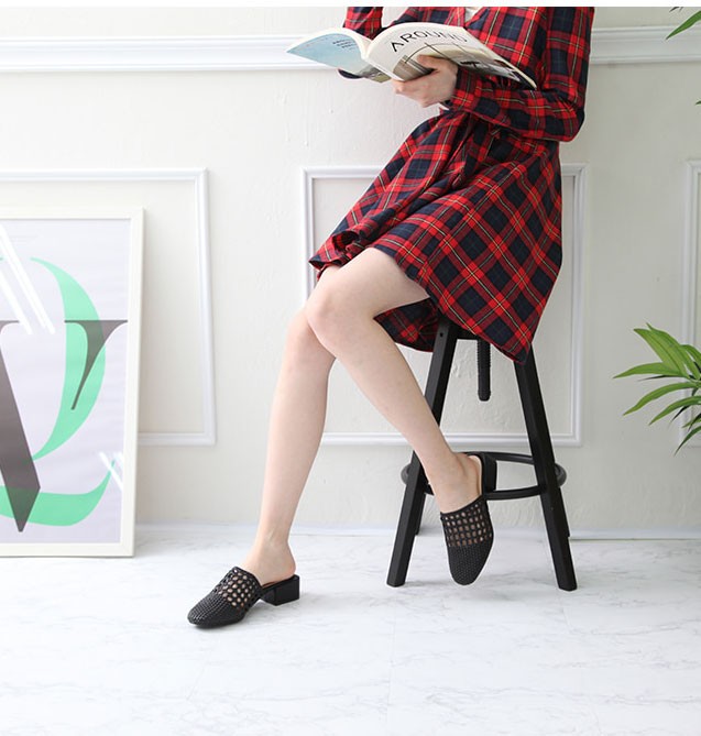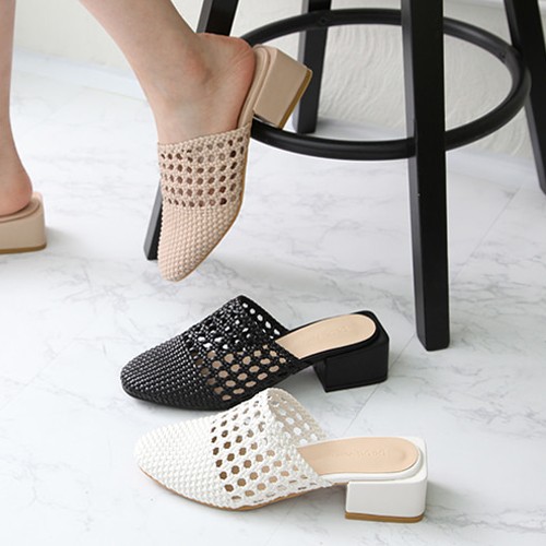 商品名:サンダル レディース ミュール 太ヒール チャンキーヒール メッシュ 2018 春 ファッション 靴 婦人靴