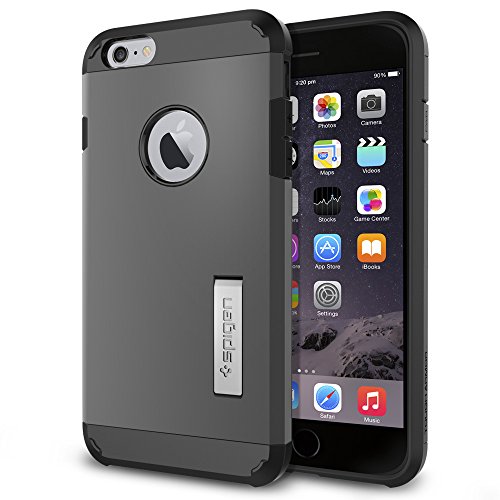 The Tough Armor case for the iPhone 6 Plus provides impact absorption while staying less bulky than other protective cases. It comes with all the protective features like Air Cushion Corners and Spider web patterned anti-stretch TPU. The built-in kickstand provides a hands-free viewing experience, bringing you protection that does more.Feature