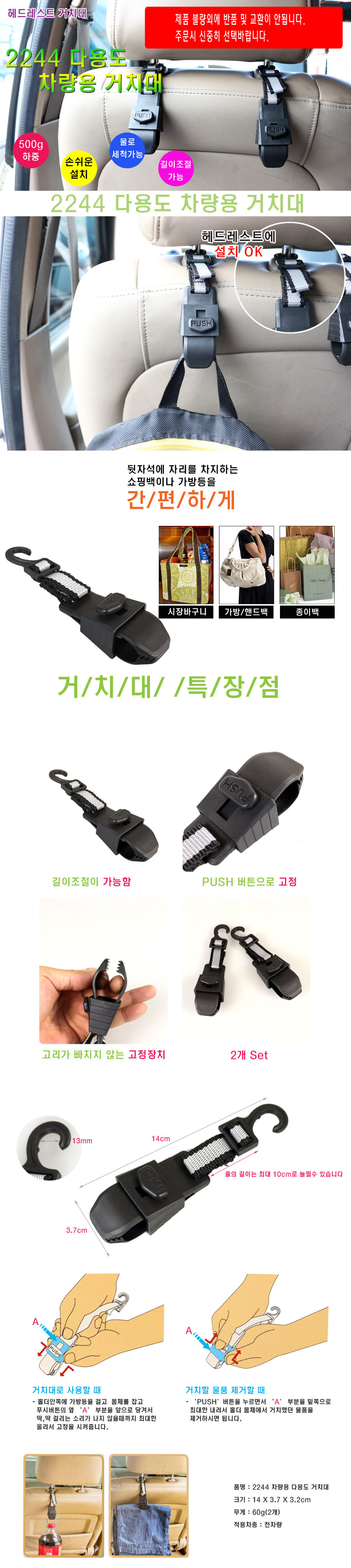 <상품명 : 2244 헤드레스트 거치대 거치대 차량용품 자동차용품 홀더 차량악세사리 자동차악세사리>