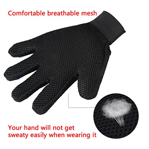 Features: - Daily pet brushing and massaging - Equipped with rounded and safe rubberized tips - Gentle rubber massages and stimulates circulation - Adjustable Velcro strap fits all hands - Comfortable Breathable Mesh - Easy to Clean and Reusable - Can use it on wet or dry pet hair - Removes loose pet hair,and traps it in the glove so that no fur goes flying - Stop chasing your pet!Let them come to you for grooming they'll love - Perfect for all coat types,long or short hair,wet or dry