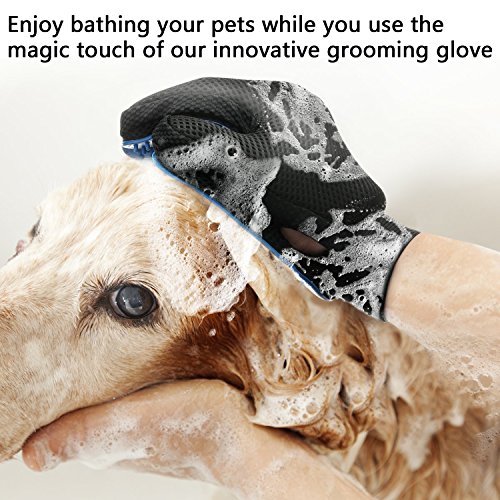This flexible, slip-on grooming gloves allow you to brush away dirt,grime,dander and loose hair from cats and dogs of all shapes and sizes.More importantly,it helps stimulate the healthy oils on their skin which can improve the softness and radiance of their coat.