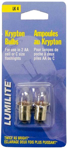 Lumilite LK4 Krypton 2.2V 0.7A Gas Flange Base Bulb for 2AA Cell or 2C Cell Flashlight, 2-Pack