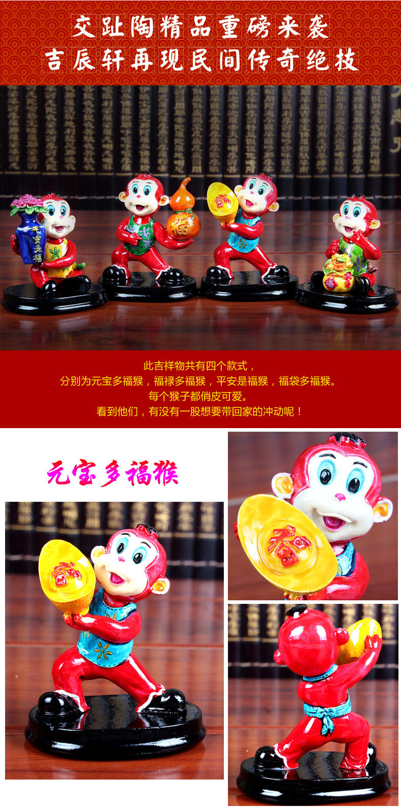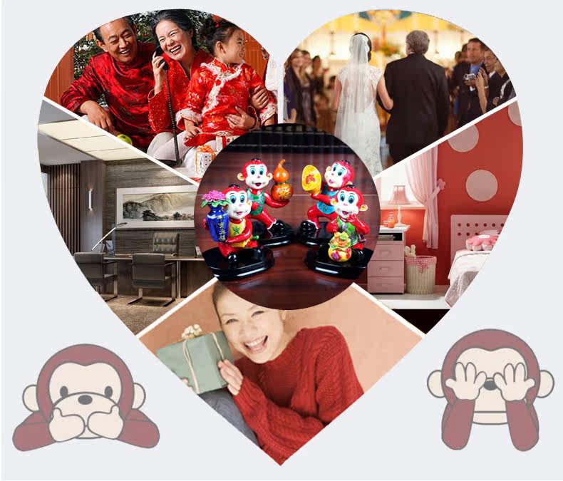 四不猴多福小猴子摆件 创意可爱家居客厅装饰工艺品摆设