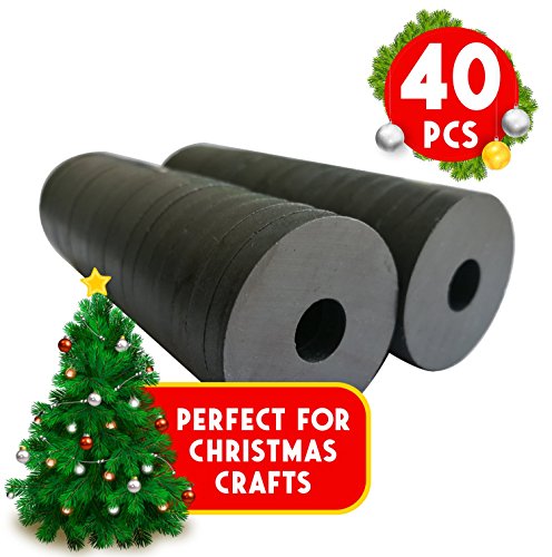 X-bet MAGNET ™ - 1.2 Inch (31mm) Round Ceramic Disc Magnets with Hole - Tiny Ring Bulk Lot of 40 Pcs - for Refrigerator (Fridge), School Science Projects, Crafts, Teachers, Around The Office