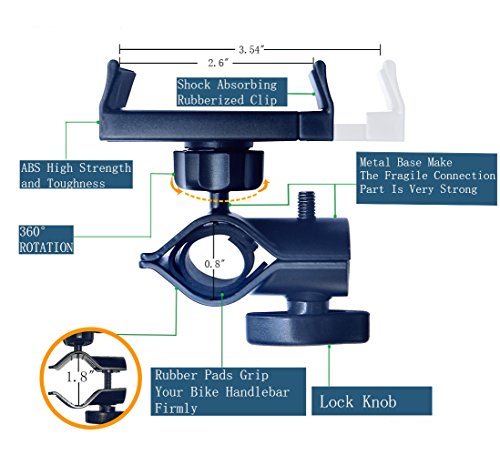- 【EASY TO INSTALL AND REMOVE】 No tools for installation required.Rotatable: 360 degree rotation with multi-angles viewing of your phone. (The associated keywords: convenient handlebar phone mount, iphone bike handlebar mount, gps handlebar mount, smartphone handlebar mount, phone mount for bike handlebars, bike handlebar phone mount, strong bike phone mount, handlebar smartphone mount, bike accessories phone mount, bike phone mount iphone 6, bike mount iphone 6, gps accessories mount).