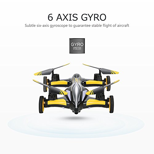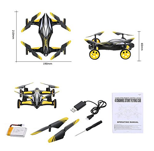 Specification: Controller: 2.4GHz mode 2 Channels: 4 Channels Gyroscope: 6-Axis Function: Forward/backward, up/down, left/right, sideward flight, hovering, 3D-flip, headless mode, high/mid/low speed, one-key return, car mode run on the ground. Remote distance: About 200m Battery for quadcopter: 3.7V 750mAh li-po battery Battery weight: 18.8g Battery dimensions: 45 x 24 x 9mm Charging time: About 90 minutes Working time: About 8 minutes Battery for remote controller: 4 x AA battery (not included) Item dimensions: 21 x 190 x 65cm / 8.3 x 7.5 x 2.6in Item weight: 92.6g Package size: 36.5 x 28 x 8.5cm / 14.4 x 11 x 3.4in Package weight: 678g / 1.5lb Package list: 1 x Quadcopter 1 x 2.4G Transmitter (mode 2) 1 x 3.7V 750mAh Li-Po Battery 1 x USB Charging Cable 2 x Spare Propellers 1 x English Manual 1 x Screw Driver Notice: This RC model is not a toy and is not suitable for children under 14 years old, keep it away from children. Carefully read the instruction manual before any use, if you are a beginner, it's advisable to be assisted by an experienced adult. 0 |
