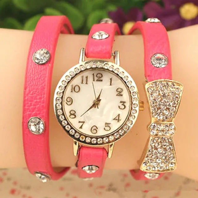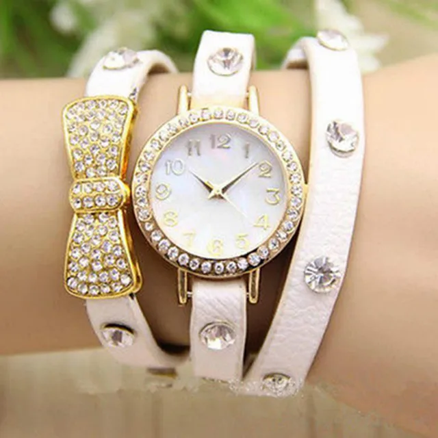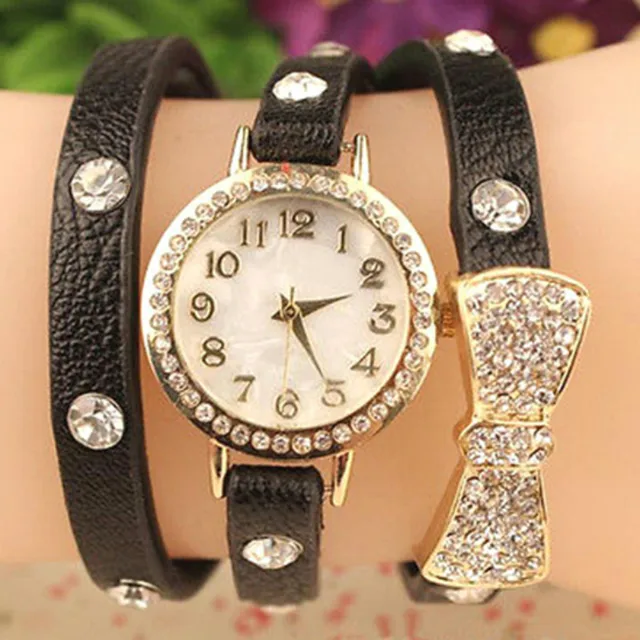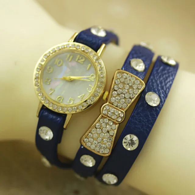 | [해외] 럭셔리 캐주얼 여성 시계 모조 가죽 석영 시계 패션 활 매듭 다이아몬드 팔찌 시계 여성 드레스 손목 |