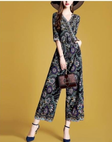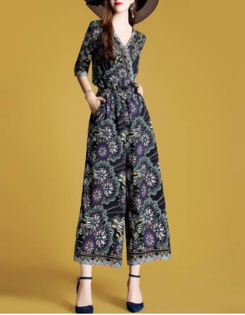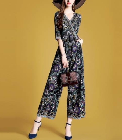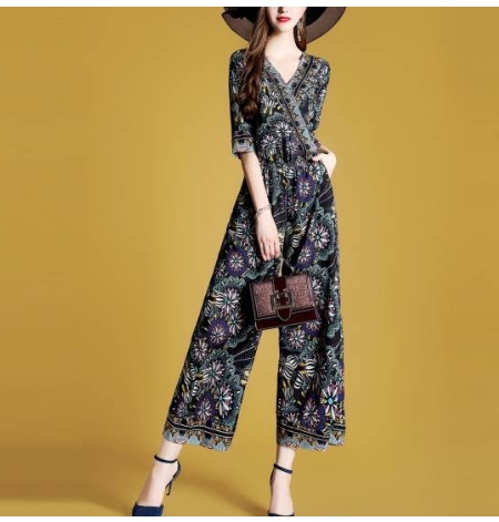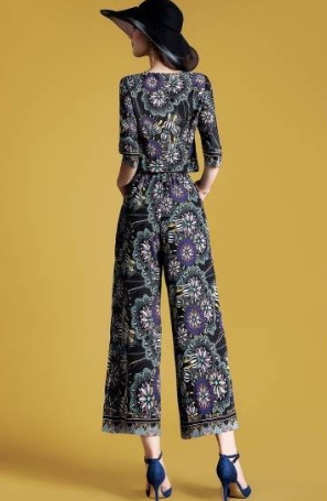 カシュクール風のVネックと、ワイドなクロップドパンツが大人な雰囲気に♪