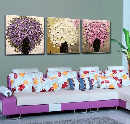 16 Inch X 16 Inch X 3 pieces ( 40cm x 40cm x 3 pieces) total 3 pieces. Oil Painting on Canvas,Please notice "Mars Art" only sale by "Mon Art"