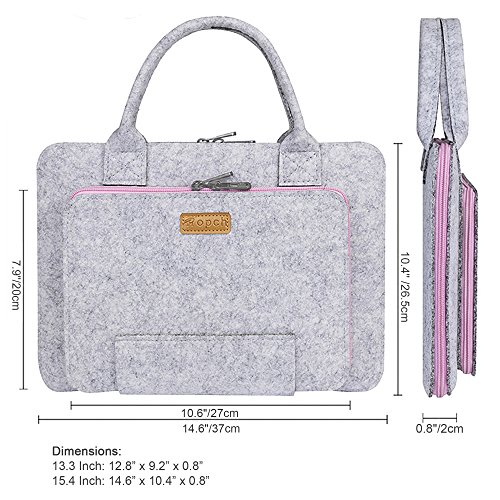 -. Feature : Internal dimensions: 31.5 x 22 x 1.5cm / 12.4" x 8.7" x 0.6"; External dimensions: 32.5 x 23.3 x 2cm / 12.8" x 9.2" x 0.8". Specially designed for 2015-2016 13.3 inch MacBook Pro, MacBook Pro Retina; / Felt cover and soft suede interior offers a sleek unique design and superior protection for your Macbook from dust, shocks, bumps & scratches; / Top handles of the case enable you to carry your laptop in comfort. / Unique front zippered bag design is perfect for your ipad mini, iPad Pro, New iPad, iPad Air, iPad Air 2 and also can organize your other electronic accessories, eg: mouse, power chargers, cables and other small accessories. Front bag size: 26.4 x 18.6cm / 10.4" x 7.3"; / Compatible with: MacBook Pro 15-inch with Touch Bar, Model: A1707.