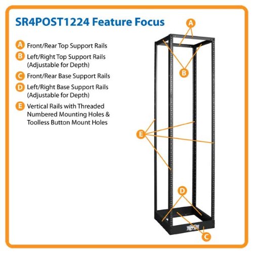 Tripp Lite 45U 4-Post Open Frame Rack, Network Equipment Rack, Threaded 12-24 Mounting Holes, 1000 lb. Capacity (SR4POST1224)