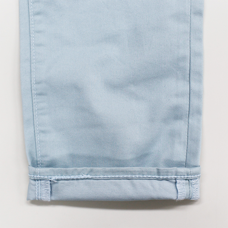 軽くて薄く、さらっとした手触りのツイル生地で、すっきりとした履き心地です。