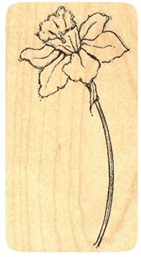 -. Title : {Single Count} Unique & Custom (2" by 3 1/4" Inches) "Single Daffodil Flower" Rectangle Shaped Genuine Wood Mounted Rubber Inking Stamp