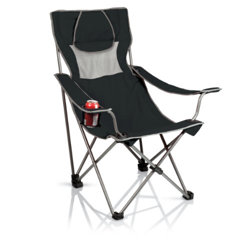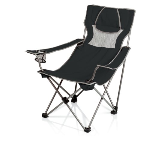 Studio : Picnic Time (Sports-non license) Publisher : Picnic Time (Sports-non license) Binding : Sports Product Description This Picnic Time Campsite Chair features a durable polyester construction with padded backrest and armrests, on a sturdy, powder-coated steel folding frame. Ideal for a little campsite RR, this chair includes a drawstring carry bag with a shoulder strap to transport your chair to that primo spot near the fire. It has a cleverly designed headrest that transforms into a pillow, a full-length zippered security pocket on the back of the headrest for your stuff and a mesh cup holder in the right armrest to insure your favorite beverage is always handy. For an instant cushy pillow, simply stuff the folded carry bag into the front headrest. When you are ready to pack it up and head home, fold the chair into itself and stick it back into the drawstring carry bag that is included. Measures 23 by 18 by 36 Inch. 0