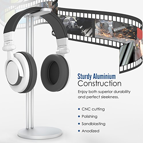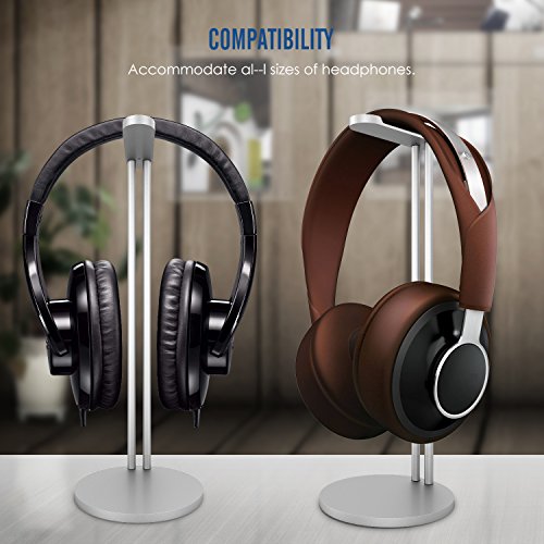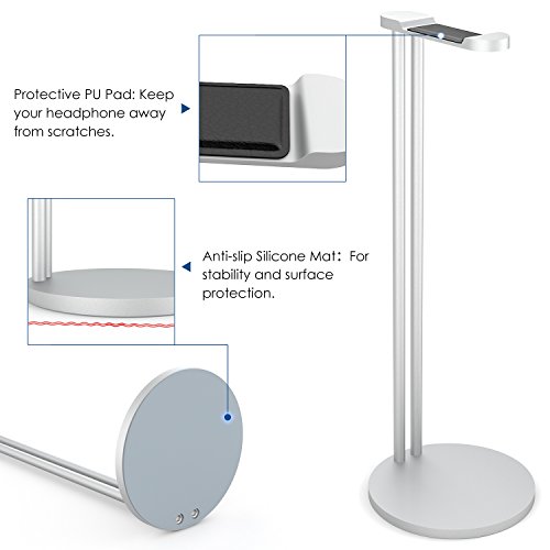MoKo Headphone Stand Holder, Premium Aluminum Alloy Headset Stand, Stable and Sleek Design for Beats, Bose, Sennheiser, Skull Candy, Sony, Philps, JVC (Compatible with All Headphones), SILVER
