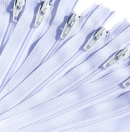Zipper, YKK ~MADE IN USA~#3 Nylon Coil Closed End - Select Length or Color (12 Zippers for Color) (9 inch, White)