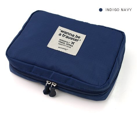 Travel Cosmetic Toiletry Multi-functional Nylon Pouch Bathroom Organizer Traveler Bag (Indigo Navy)