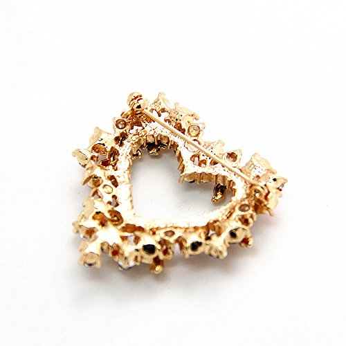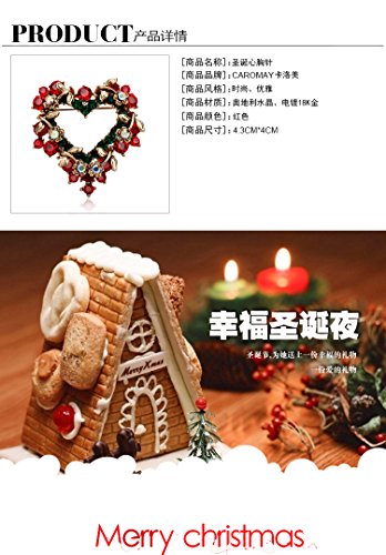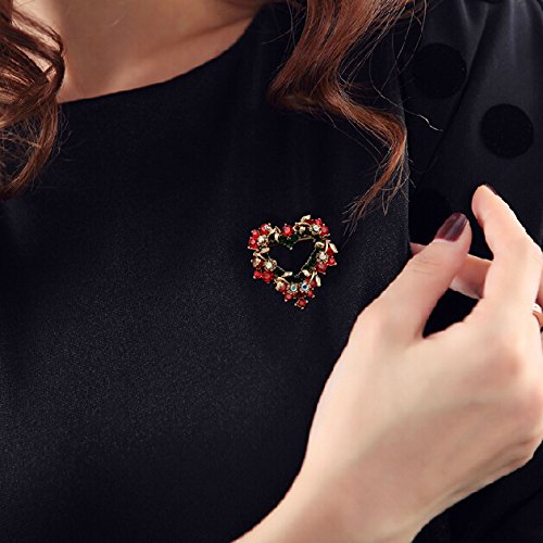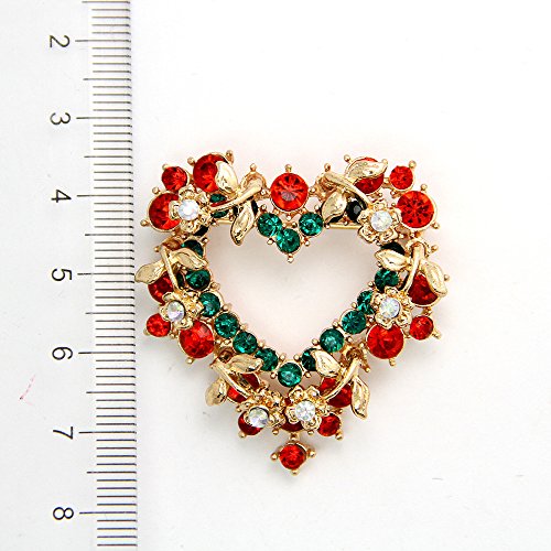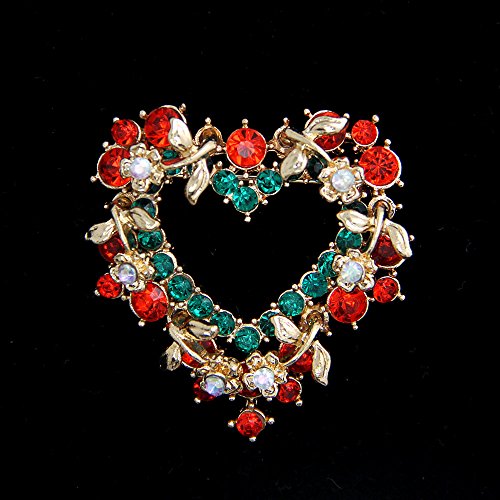-. Title : Christmas Brooch Pin Vintage Red Heart Crystal Christmas Wreath Holiday Brooch Xmas Gift