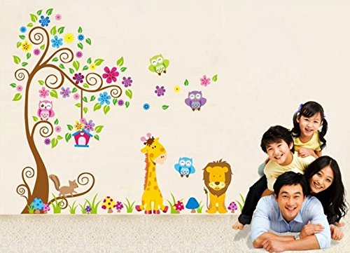 Rainbow Fox Lovely Blooms Zoo Nursery Children's Room Decorative Wall Stickers (RF1218)