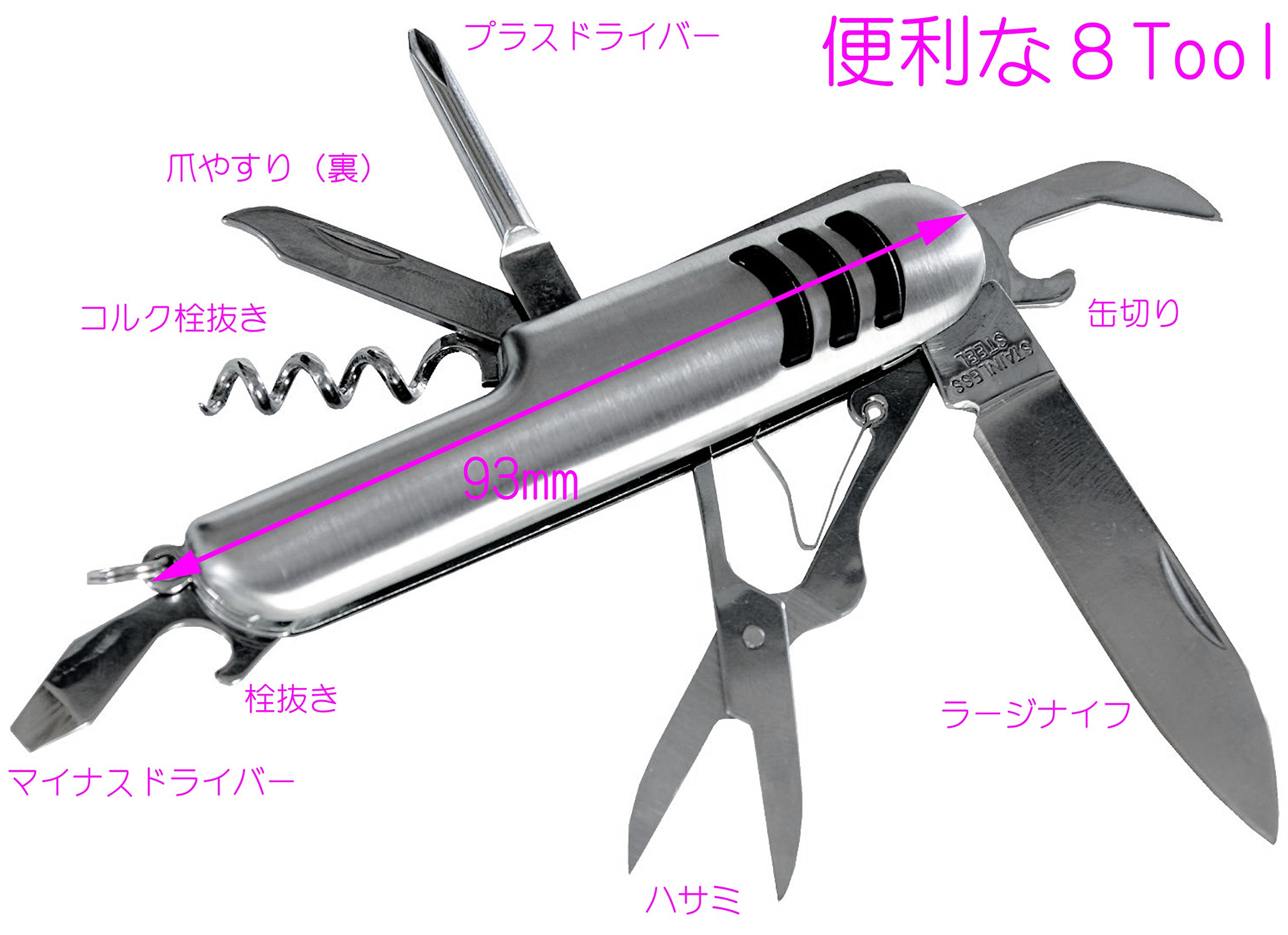 Phillips screwdriver · Nail file · Cork stopper · Bottle opener · Flathead screwdriver · Can opener · Large knife · Scissors useful 8 Taketa set