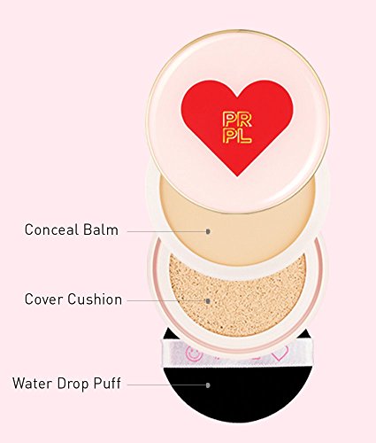 PRPL Dual Cover Cushion (Conceal Balm SPF30, PA++ / Cover Cushion SPF50+, PA+++) Concealer Foundation Compact #21 Cream Ivory
