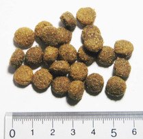 素材構成:粗タンパク質 28%以上、粗脂肪 9%以上、粗繊維 5%以下、粗灰分 7%以下、水分 11%以下、カルシウム 1.2%以上、リン 1%以上、リノール酸 2%以上、オメガ6脂肪酸 2.5%以上、オメガ3脂肪酸 0.5%以上