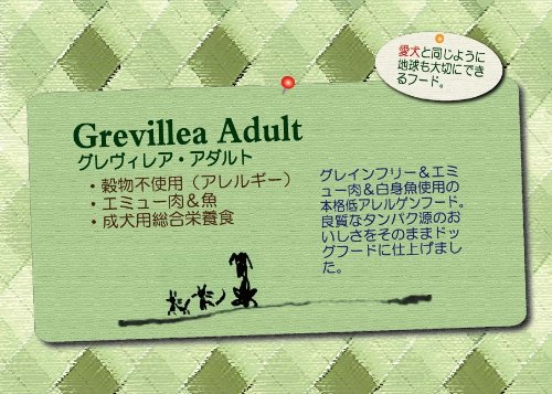 原材料:オーストラリアンマッカレル(サワラ)、テイラー(アミキリ)、肉、じゃがいも、さつまいも、タピオカ、キヌア、アマランサス、アルファルファ、スクアッシュ、チアシード、りんご、ブラックカラント、パセリ、亜麻仁油、ブルーベリー抽出物、乾燥昆布粉、ガーリック粉、ユッカ、クロレラ、ネトル、ダンデライオン(根)、カモミール、スイートフェンネル、ビタミン&ミネラル(*1) (*1) ビタミン(ビタミンA、ビタミンB1、B6、B12、リボフラビン、ビオチン、ナイアシン、パントテン酸、塩化コリン、L-アスコルビン酸、ビタミンD3、葉酸)、β-カロテン、アミノ酸亜鉛キレート、アミノ酸鉄キレート、アミノ酸マンガンキレート、アミノ酸銅キレート、ヨウ素酸カルシウム、塩化カリウム、亜セレン酸ナトリウム、アミノ酸類(アルギニン、トリプトファン、リジン、L-カルニチン)、タウリン、イオウ、クエン酸